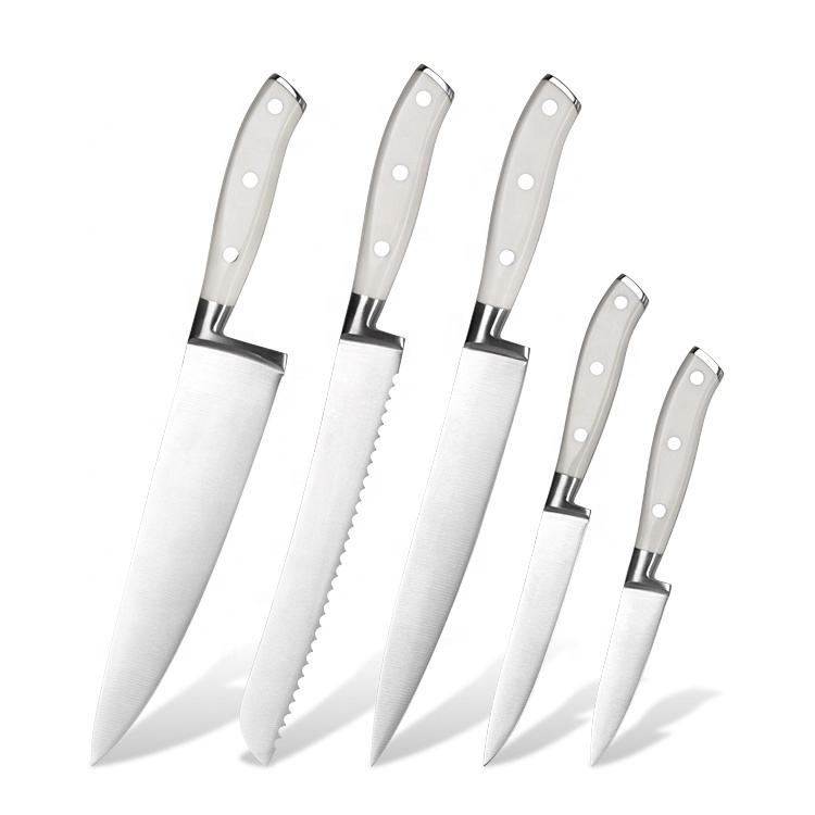 High Quality 8 Inch Kitchen Slicing Knife Multifunctional Utility Sharp Chef Kitchen Knives Set White ABS Handle