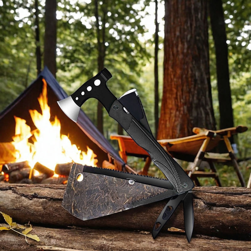 Chinese axe Hammer Tool Outdoor With Pouch Camping Accessories With Ruler Knife Saw Whistle for Man Multitool