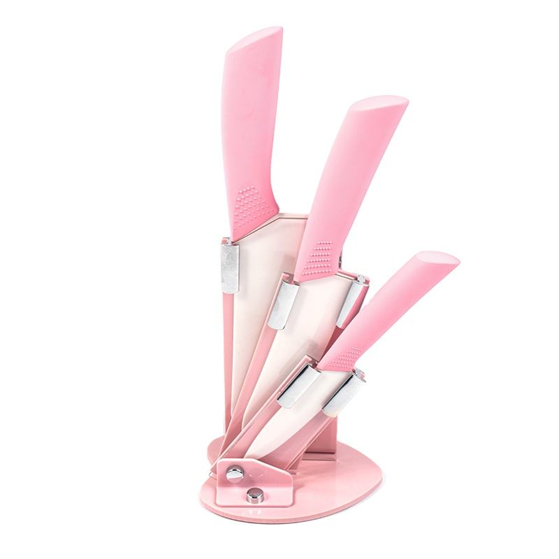 Factory Supply Stainless Steel Chef’s Fruit Knife Sharp and Durable 4pcs Kitchen Knife Set with Pink Knife Holder