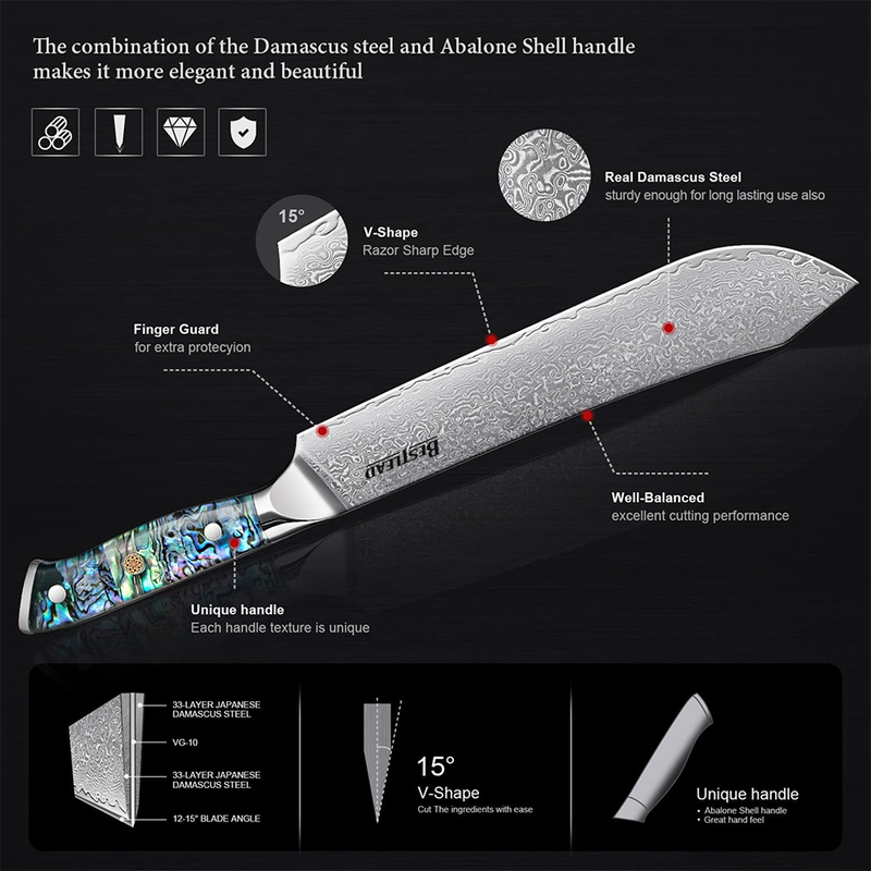 Factory Wholesale 9 Inch Chef’s Knife 67 Layers Damascus Steel Abalone Shell Handle Chef’s Knife Sharp Kitchen Knives
