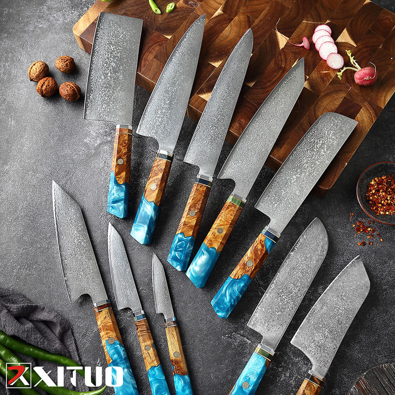 Factory Wholesale Damascus Knife Set Kitchen Knives Professional Chefs Santoku Knives Home Kitchen Cooking Muti-function Tools