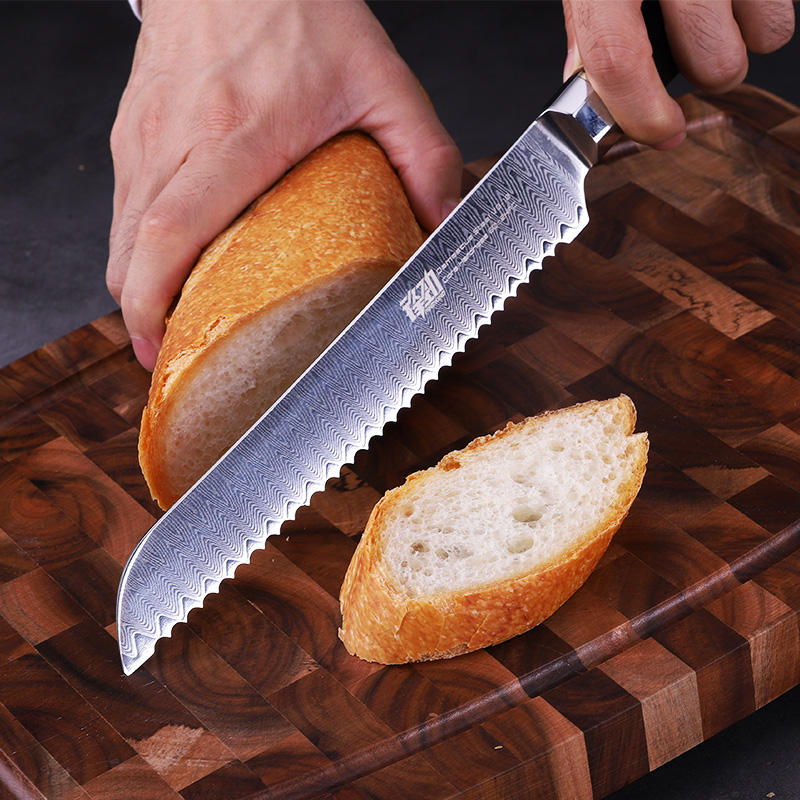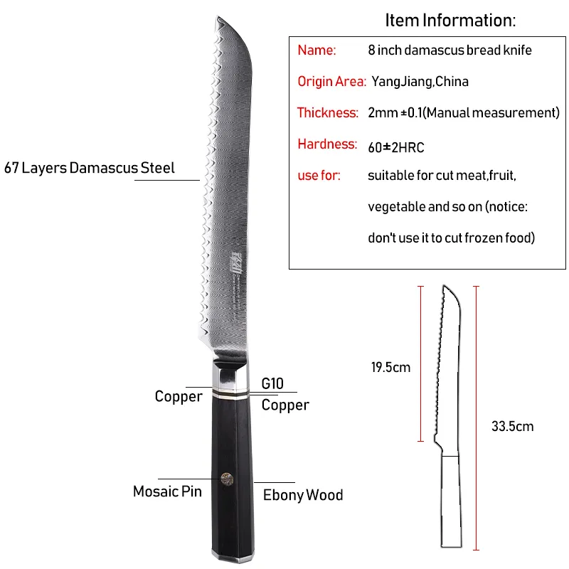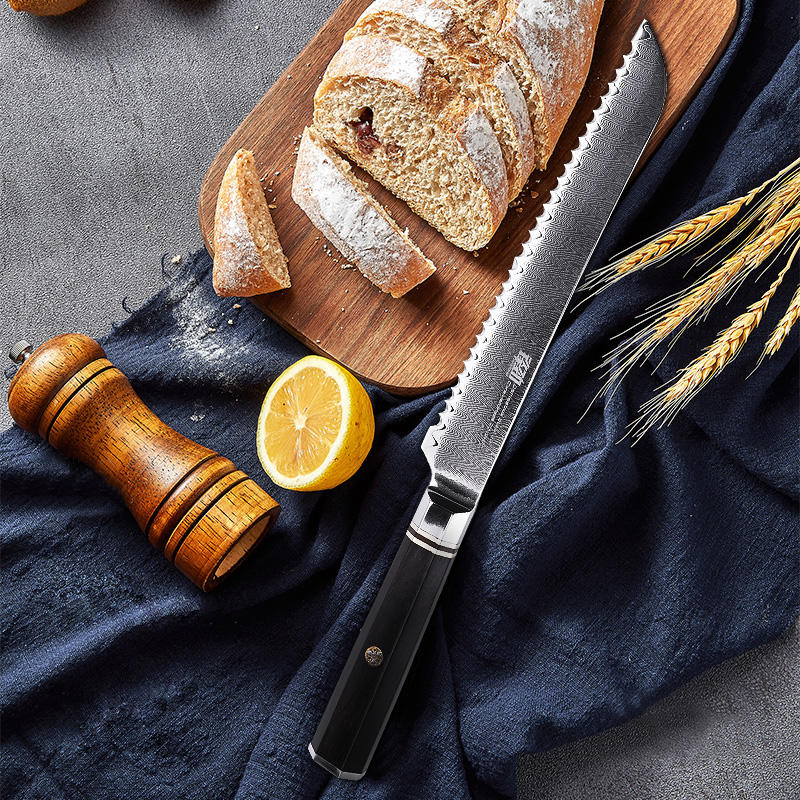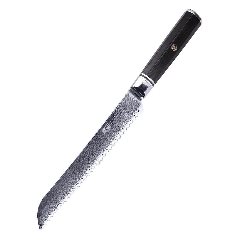 FINDKING 8 Inch Knives Octagonal Handle 67 Layers Damascus Steel Kitchen Chef Knife Serrated Bread Knife