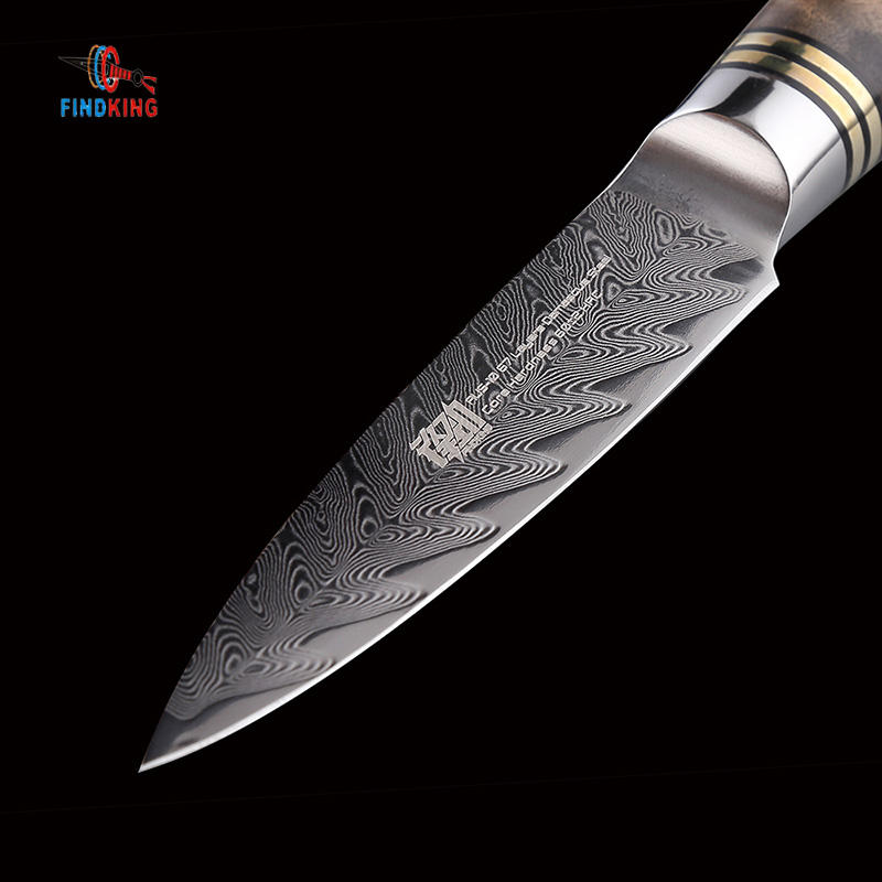 FINDKING AUS-10 Damascus Steel Arrow Pattern Sapele Wood Handle Damascus Knife 3.5 Inch Paring Knife 67 Layers Fruit Knives
