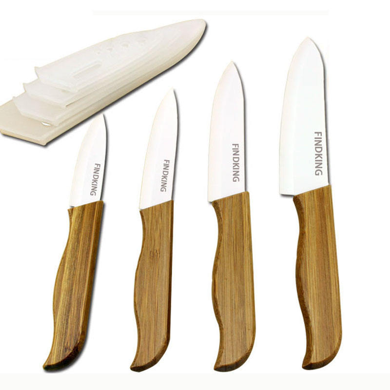 FINDKING Bamboo Handle with White Blade Ceramic Knife Kitchen Set 3″ 4″ 5″ 6 ” Inch +Covers