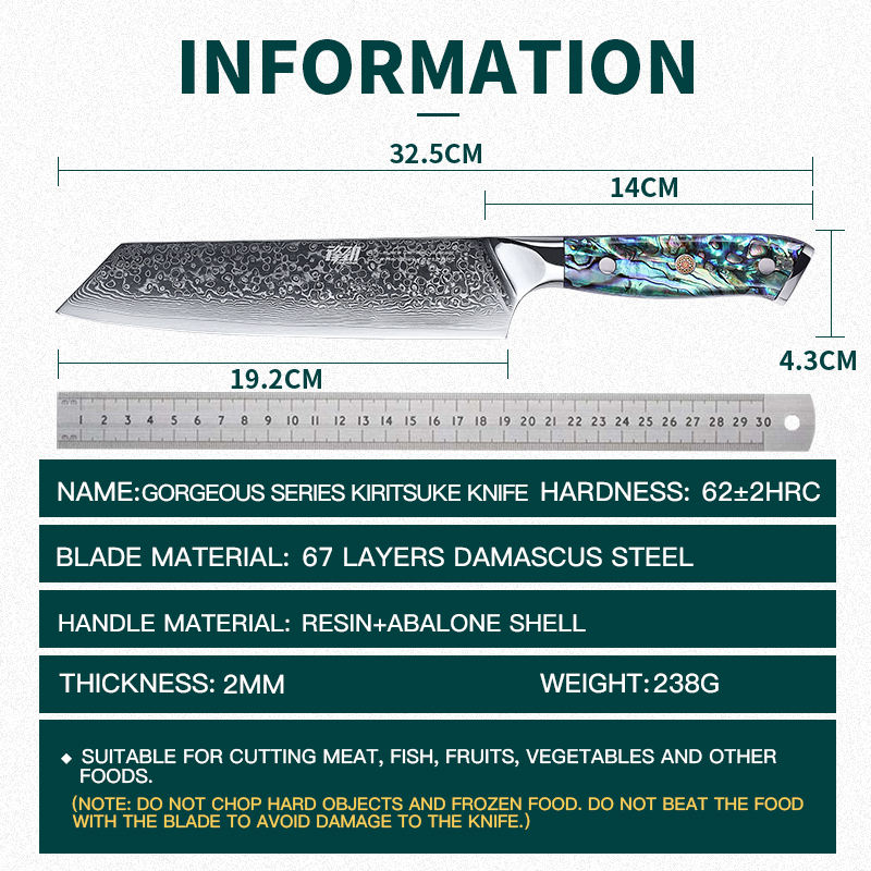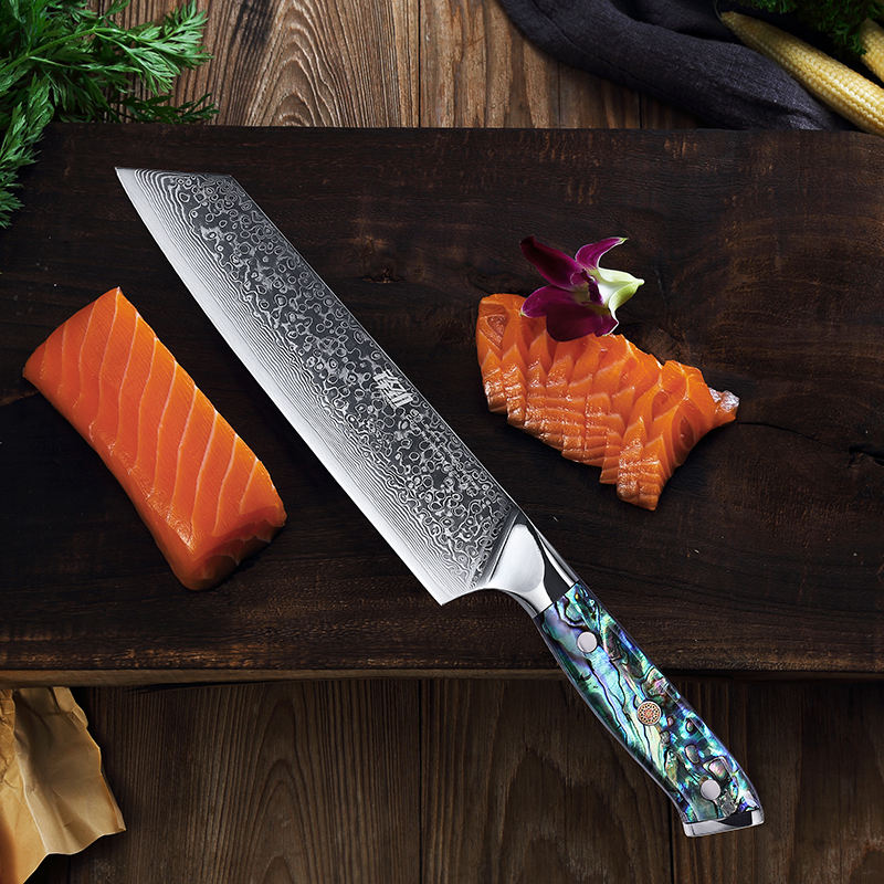 FINDKING Gorgeous Series 67 Layers Damascus Steel Kitchen Knife Abalone Resin Handle Professional Japanese 7 Inch Santoku Knife
