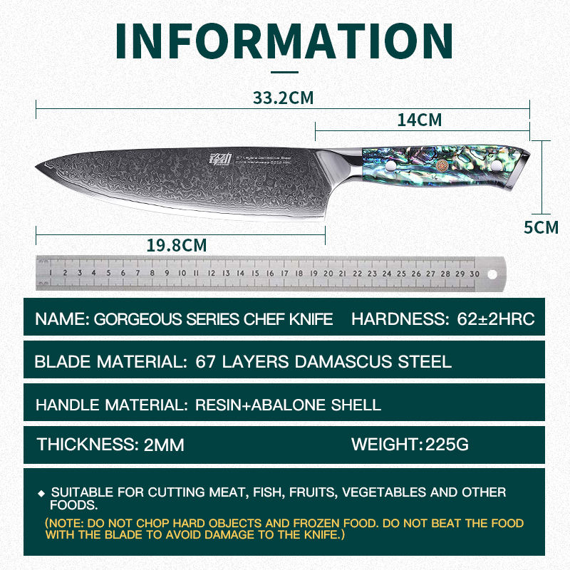 FINDKING Gorgeous Series 67 Layers Damascus Steel Kitchen Knives Abalone Resin Handle Professional 8 Inch Kitchen Chef Knife