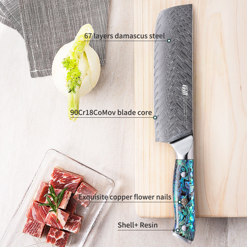 FINDKING Gorgeous Series 7 Inch Nakiri Knife OEM&ODM Professional Damascus Steel Blade Abalone Shell Handle Kitchen Chef Knife