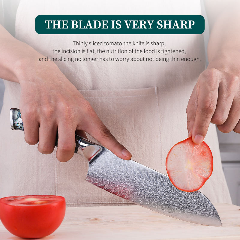 FINDKING Gorgeous Series 7 Inch Santoku Knife Custom 67 Layers Damascus Steel Blade Abalone Shell Handle Kitchen Chef Knife