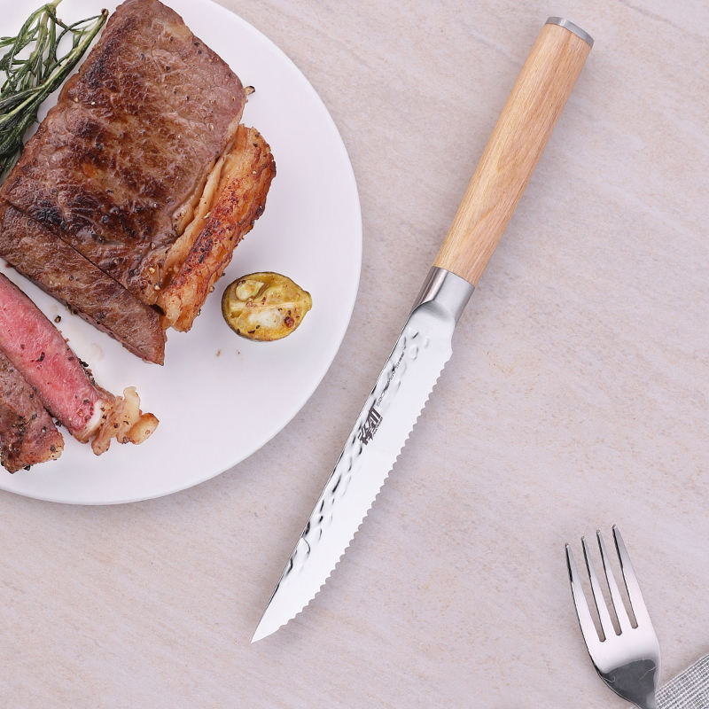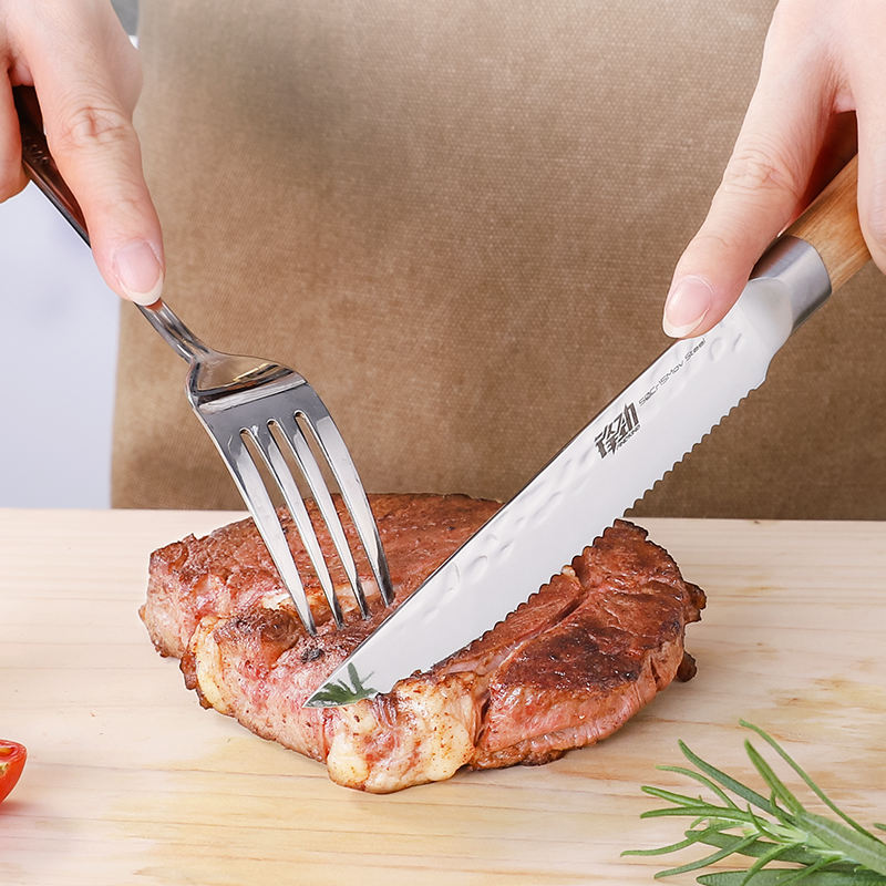 FINDKING Luxury 5 Inch Steak Knife Stainless Steel Serrated Steak Knife Set of 6 with Pakka Wood Handle