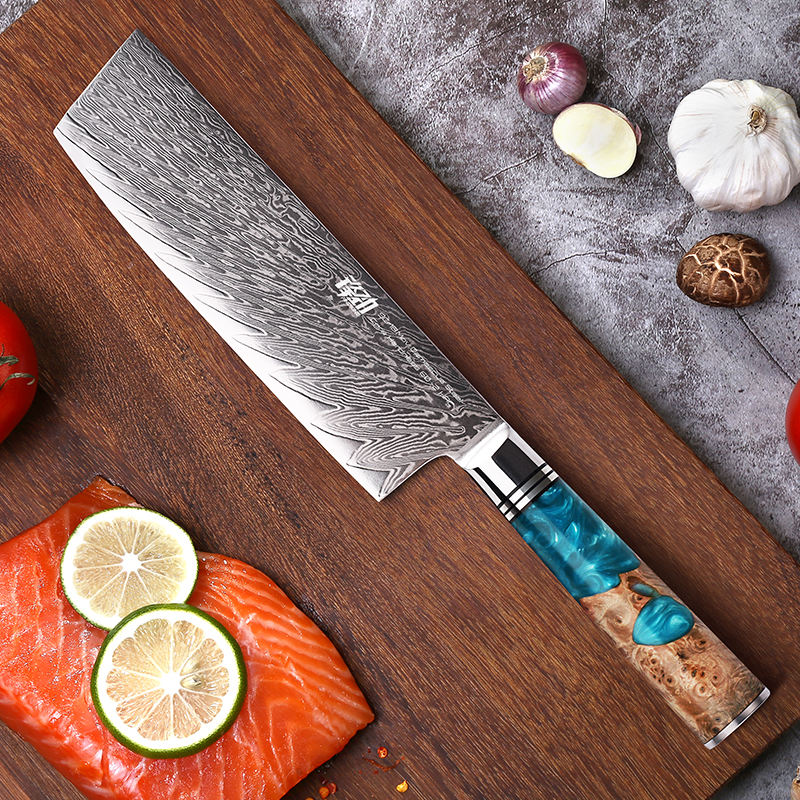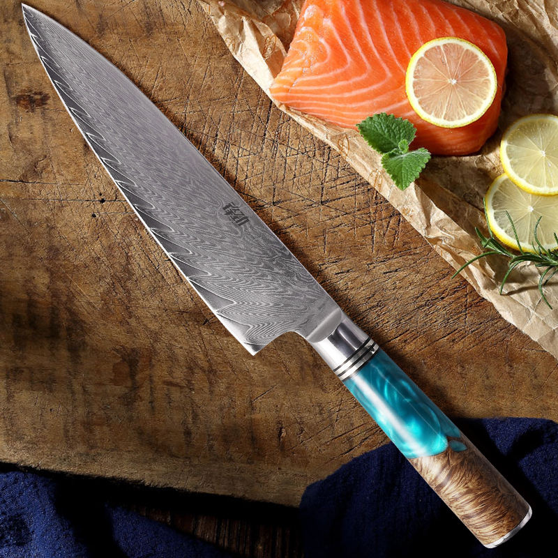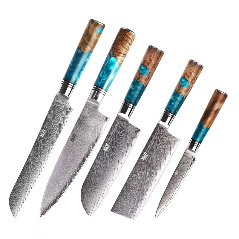 FINDKING Luxury Blue Resin Sapele Wood Handle 67 Layers Damascus Steel Knife Chef Cooking Kitchen Knives Damascus Knife Set