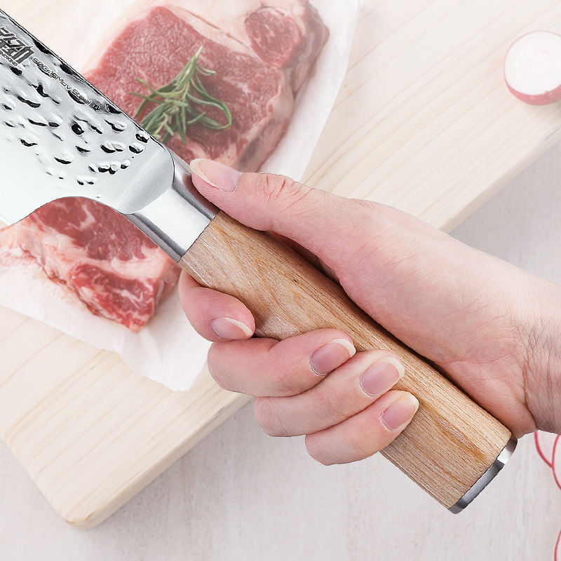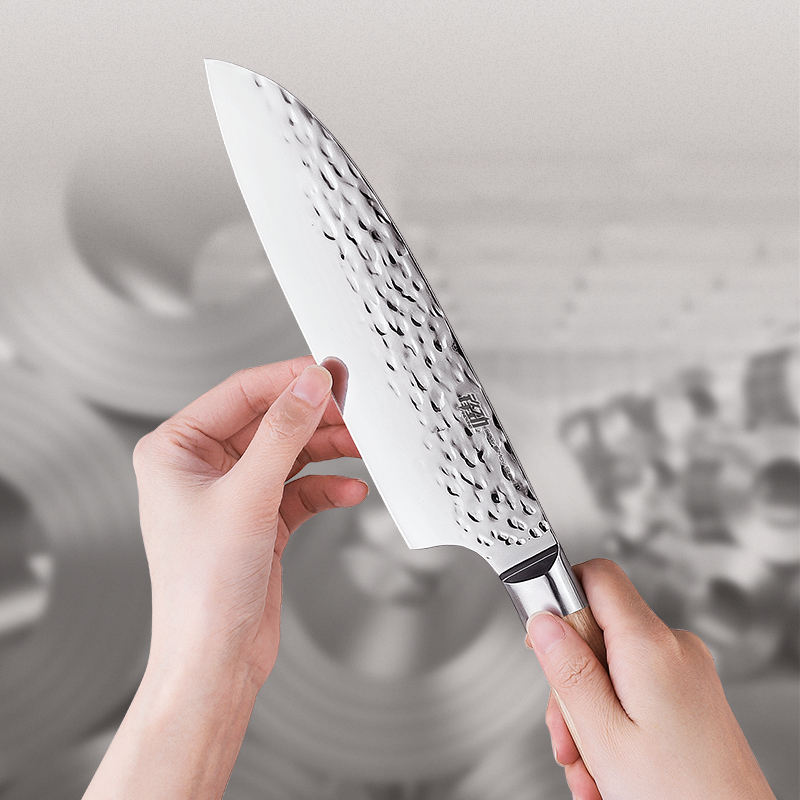 FINDKING New Arrival 7 Inch Japanese Stainless Steel Santoku Knife with 5Cr15Mov Steel and Pakka Wood Handle Kitchen Chef Knife