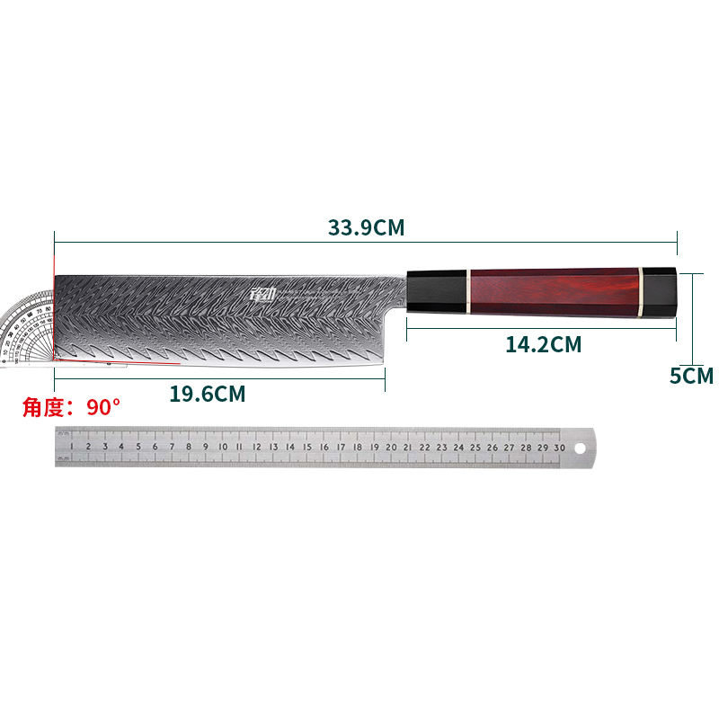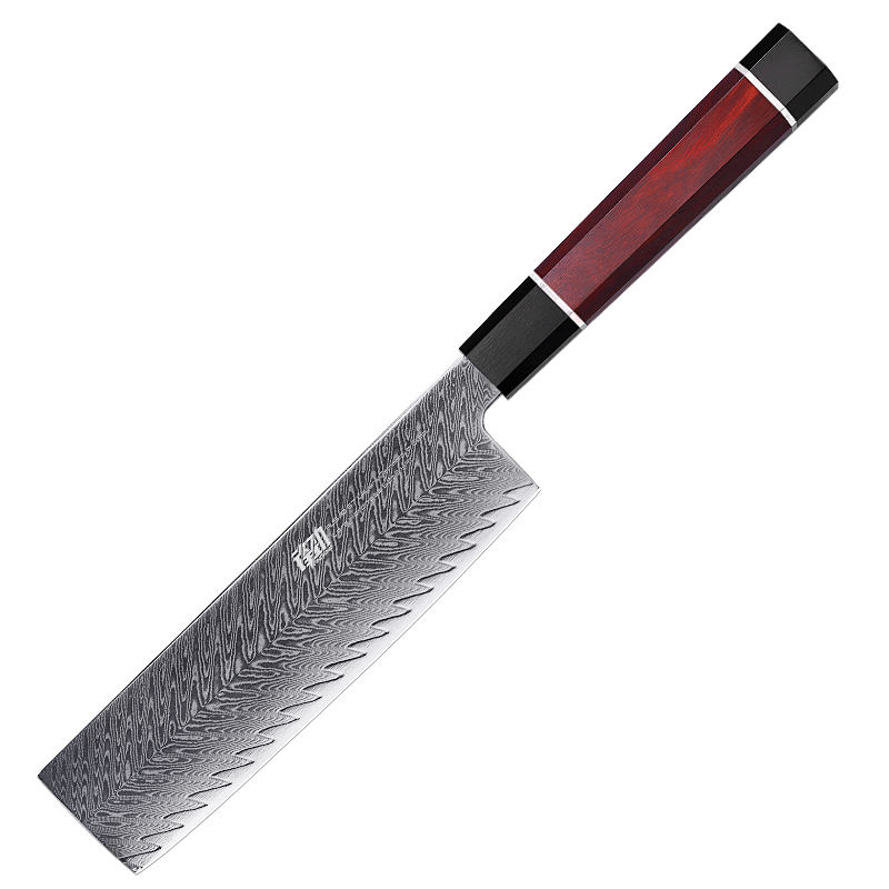 FINDKING Red Samurai Series Rosewood Handle AUS-10 67 Layers Damascus Steel 6.5 Inch Kitchen Cleaver Nakiri Santoku Chef Knife