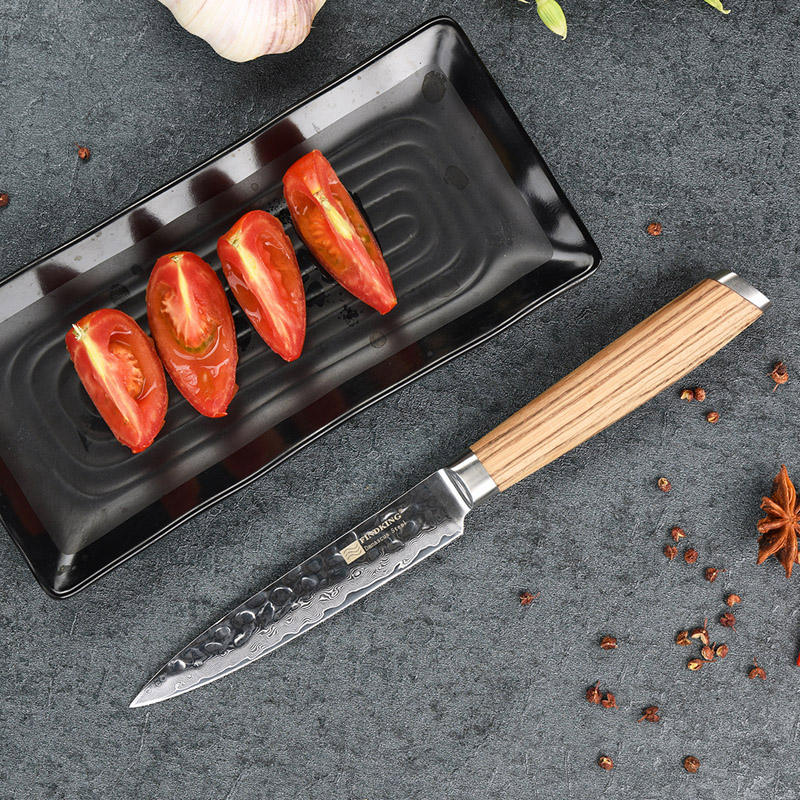 FINDKING Zebra Wooden Handle Damascus Knives Set 4 Pcs 8 Inch Chef 7 Inch Santoku 5 Inch Utility 3 Inch Fruit Knife 67 Layers
