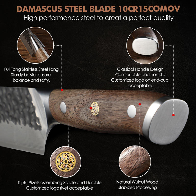 Forged Black Hammer Blade Japanese Damascus Steel Vg10 Kitchen Steak Knife Set