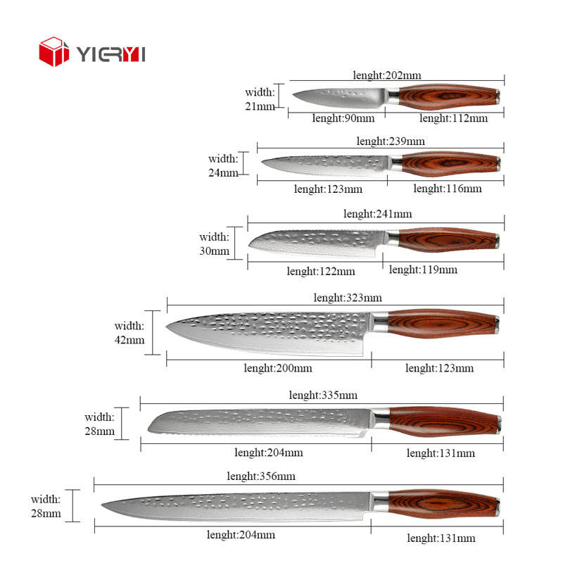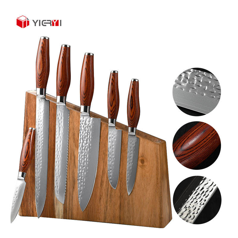 Forged Damascus Steel Blade With Pakka Wood Handle 6pcs Kitchen Knife Set for Kitchen Tools