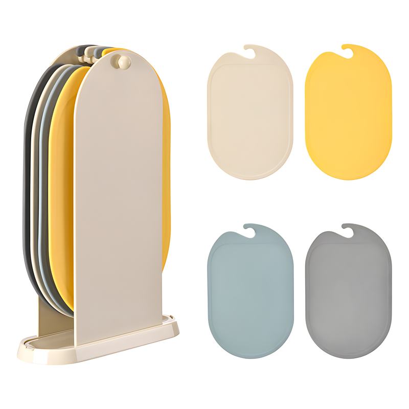 Four-piece Eco-friendly Plastic Cutting Board Set With Non-slip Feet & Deep Drip Tank for Easy Grip Kitchen Chopping Style