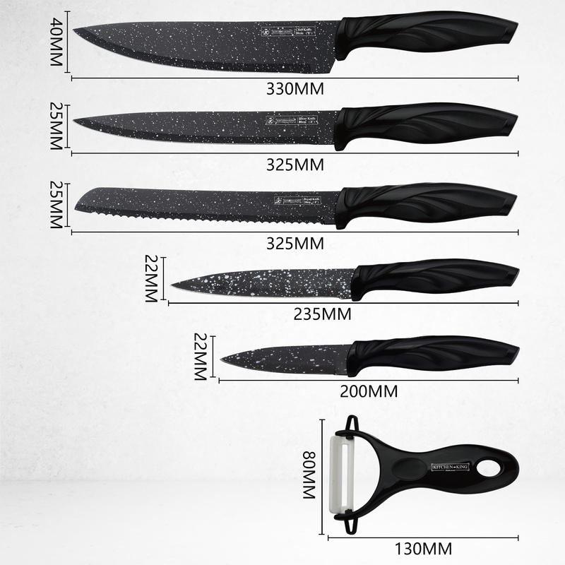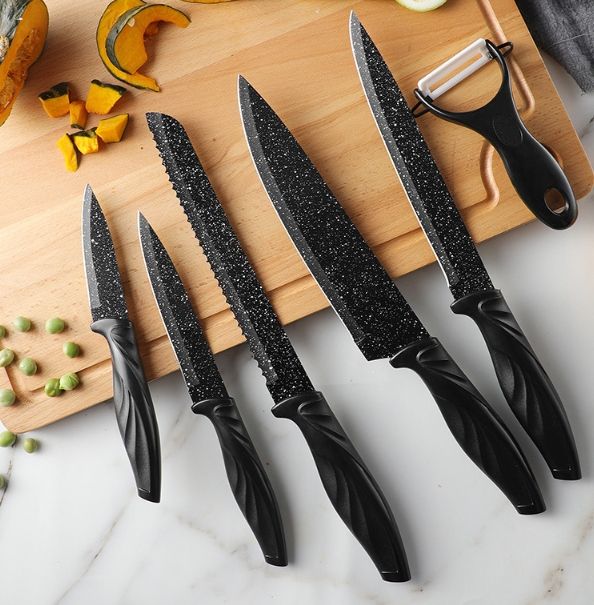 Free Sample 6 Pcs Stainless Steel Knife Sets Ceramic Knife Sharpener with Kitchenware Stainless Steel Knife Box