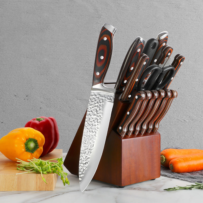 Free Sample Classic Carbon Steel Chef Knife Heavy Duty Kitchen Knife Set of Knives with Stand for Restaurants