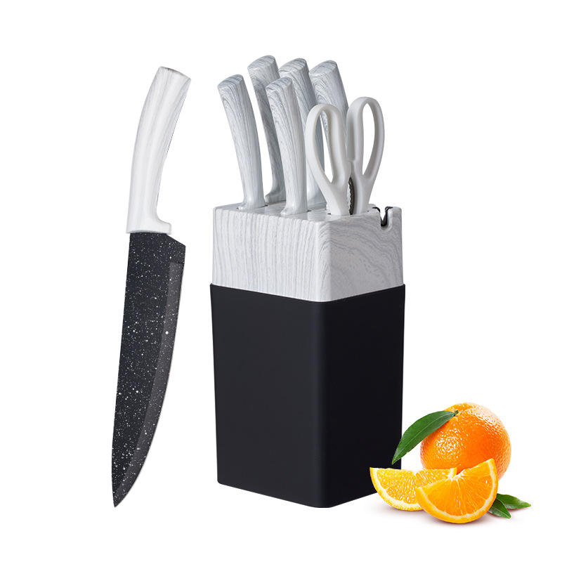 Free Sample Stainless Steel Butcher Knife Set Cooking Fruit Slicer Block Holder Stainless Steel Components