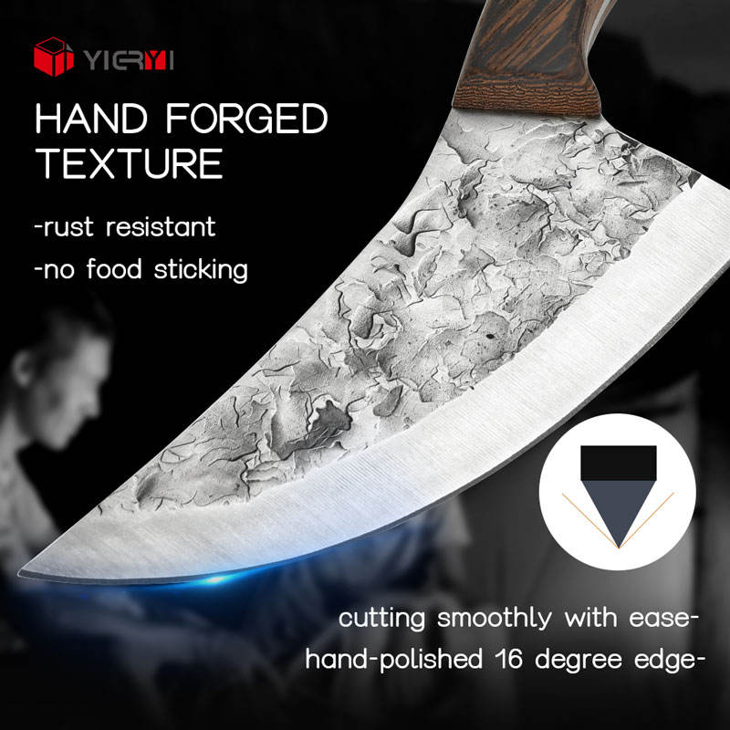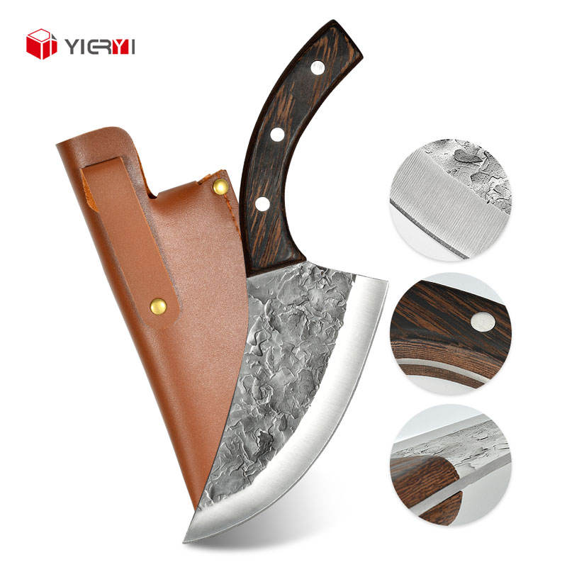 Full Tang Knife Handmade Forged Butcher Knife Serbian Chef Knife Cleaver With Leather Sheath for Kitchen Camping BBQ