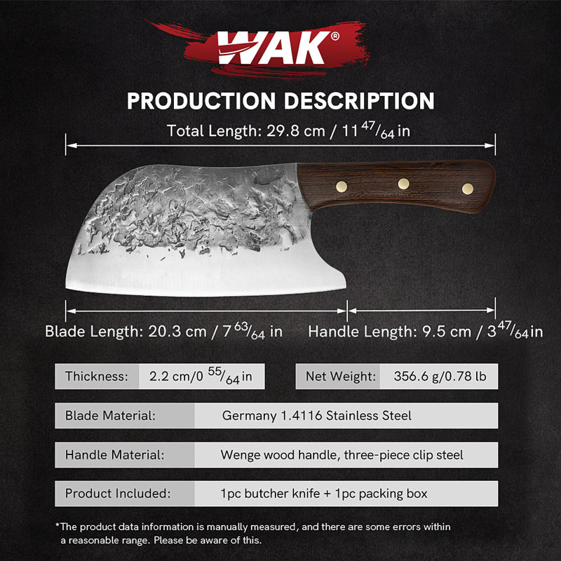 Full Tang Stainless Steel Butcher Knife Serbian Kitchen Cleaver for Meat Bone and Vegetable Chopping by Chef