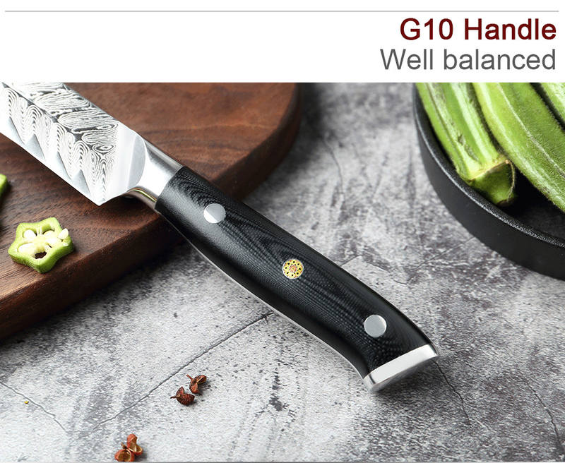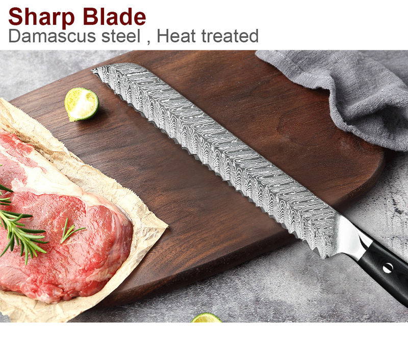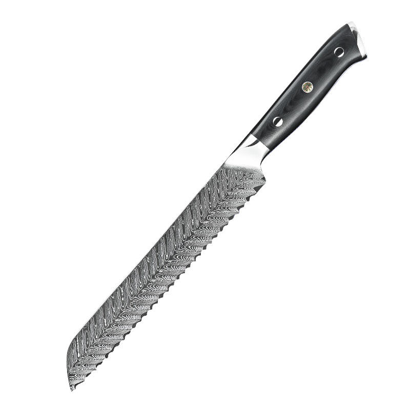 G10 Handle Feather Pattern 67 Layers 8Inch Damascus Bread Knife