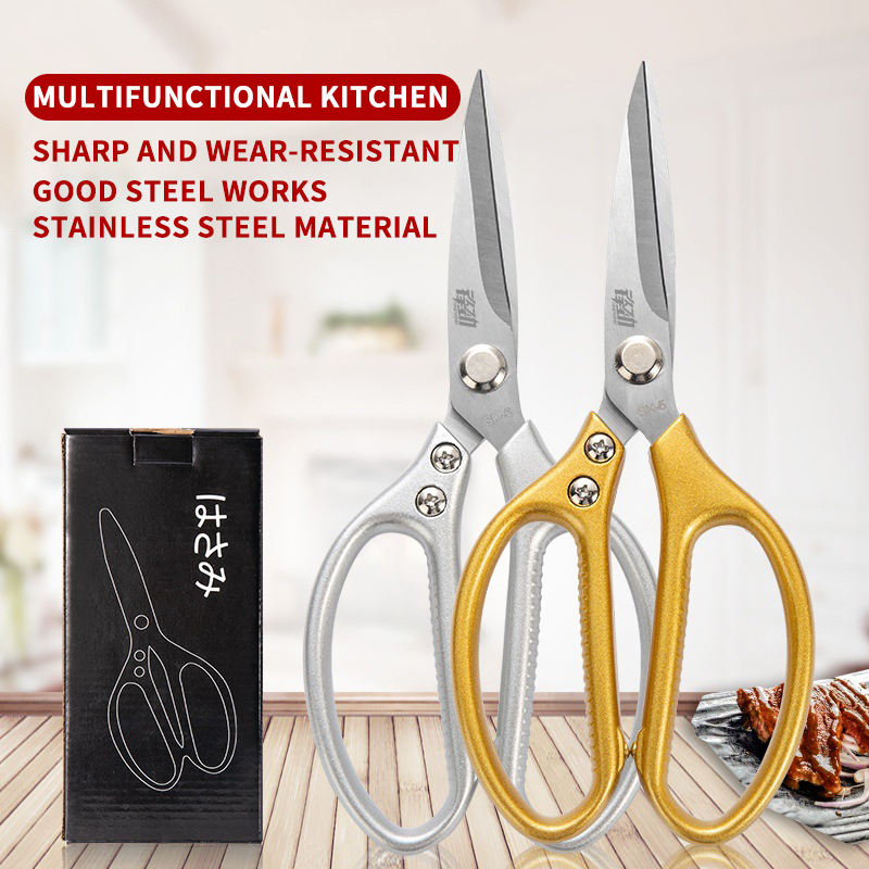 Gold Silver Multifunctional SK5 Kitchen Scissors for Easy Cutting of Meat, Fish, Chicken Bones
