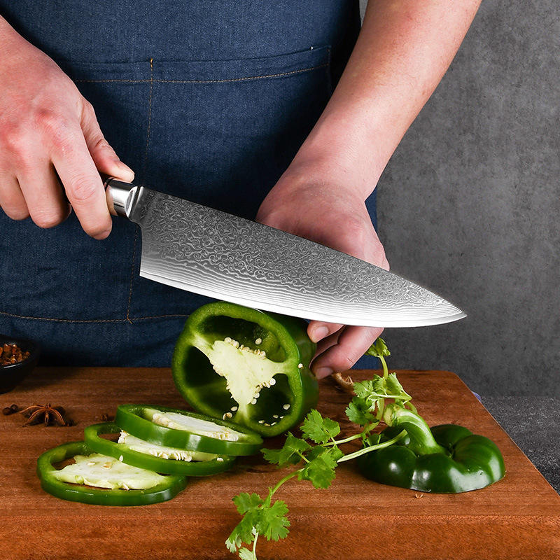 Good Sale Japanese Kitchen Chef Knife with Ultra Sharp German Damascus Blade Full Cut with Acrylic and Carbon crushing Handle