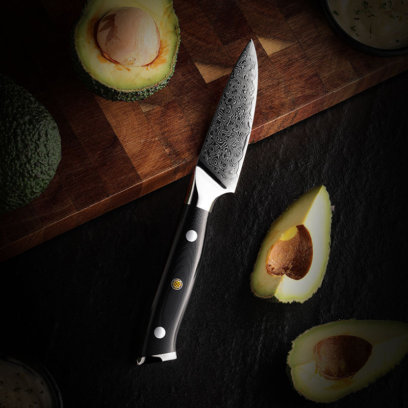 GRANDSHARP 3.5″ Japanese Damascus Steel AUS-10 Mosaic Rivet G10 Handle Peeling Fruit Knife Damascus Paring Knife