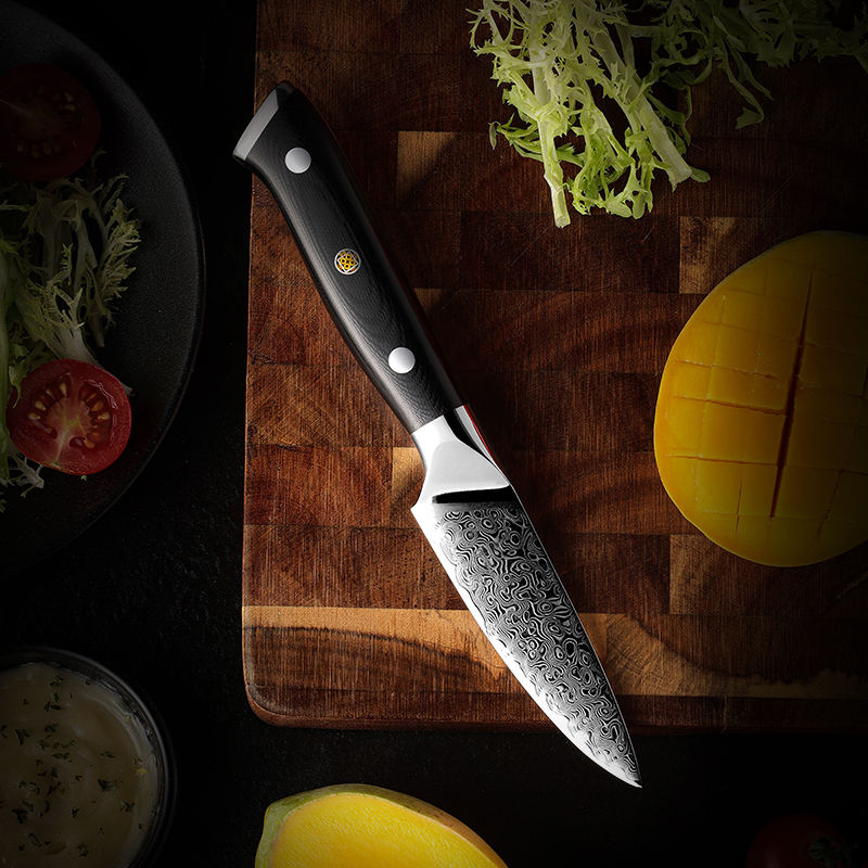 Product Name Damascus Steel AUS-10 Mosaic Rivet G10 Handle Peeling Fruit Knife