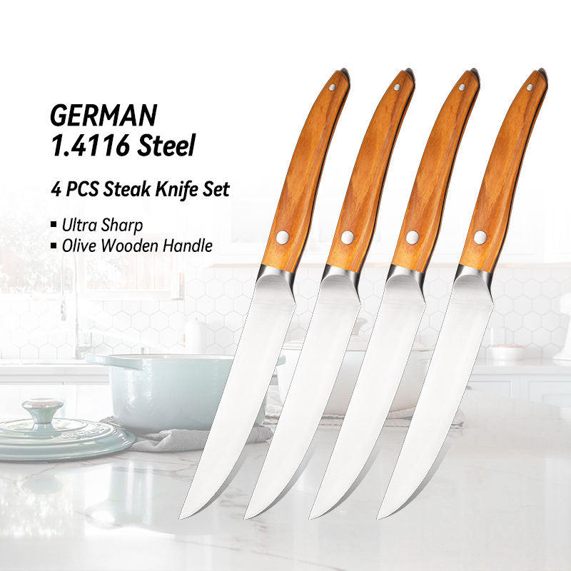 Grandsharp 4 Pcs Steak Knife Set 5.5 Inch High Carbon German 1.4116 Stainless Steel Steak Knife Meat Cutter Table Dinner Knives