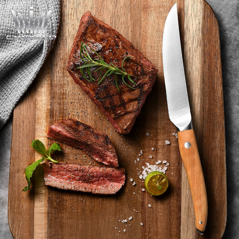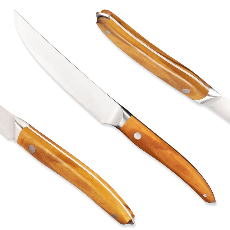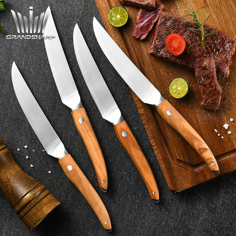 Grandsharp 5.5 Inch High Carbon German 1.4116 Stainless Steel Steak Knife Meat Cutter Table Dinner Knives with Olive Wood Handle