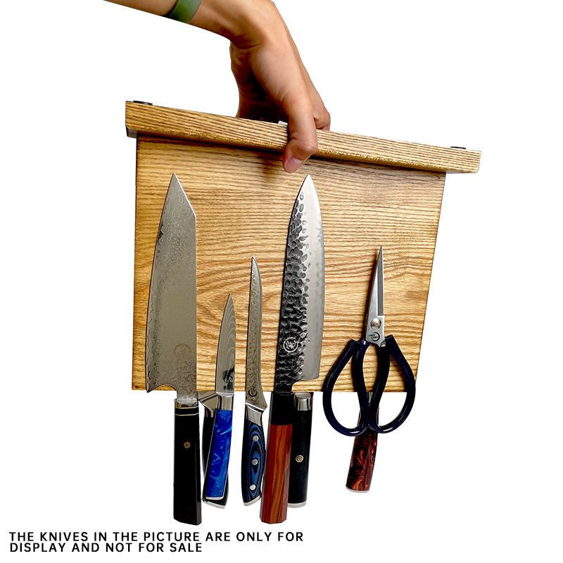 Grandsharp Eco Friendly Carbonized Ashtree Wood Kitchen Knife Block Double Side Magnetic Knife Holder Stand Kitchen Accessories