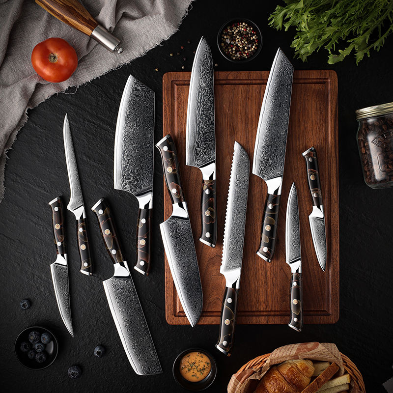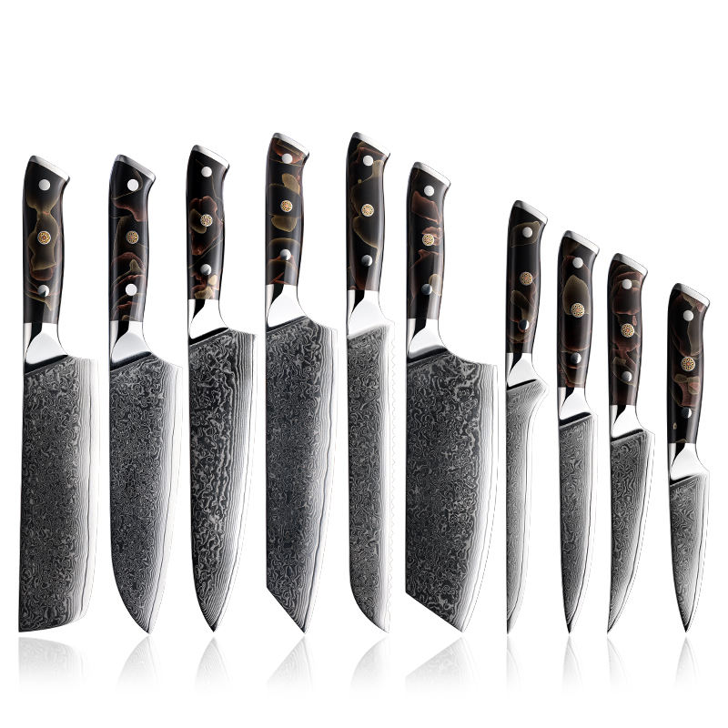 Grandsharp Japanese Damascus Steel Kitchen Knife Professional Stainless Steel Chef Knives Set With Resin&Copper Cloth Handle