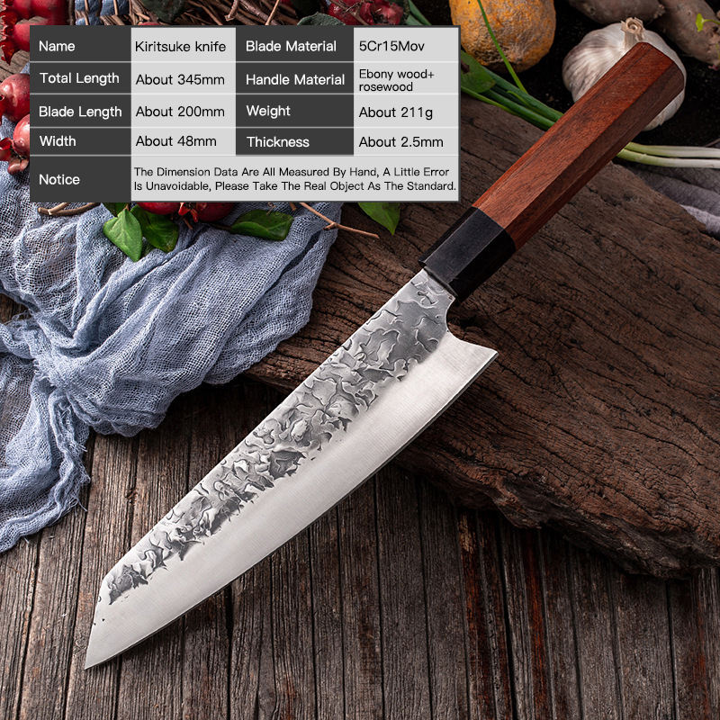 Handmade Forged Stainless Carbon Steel Cooking Chef Knife 8 Inch Nakiri Knife 2 Pcs Japanese Octagonal Handle Kitchen Knife