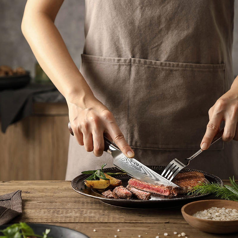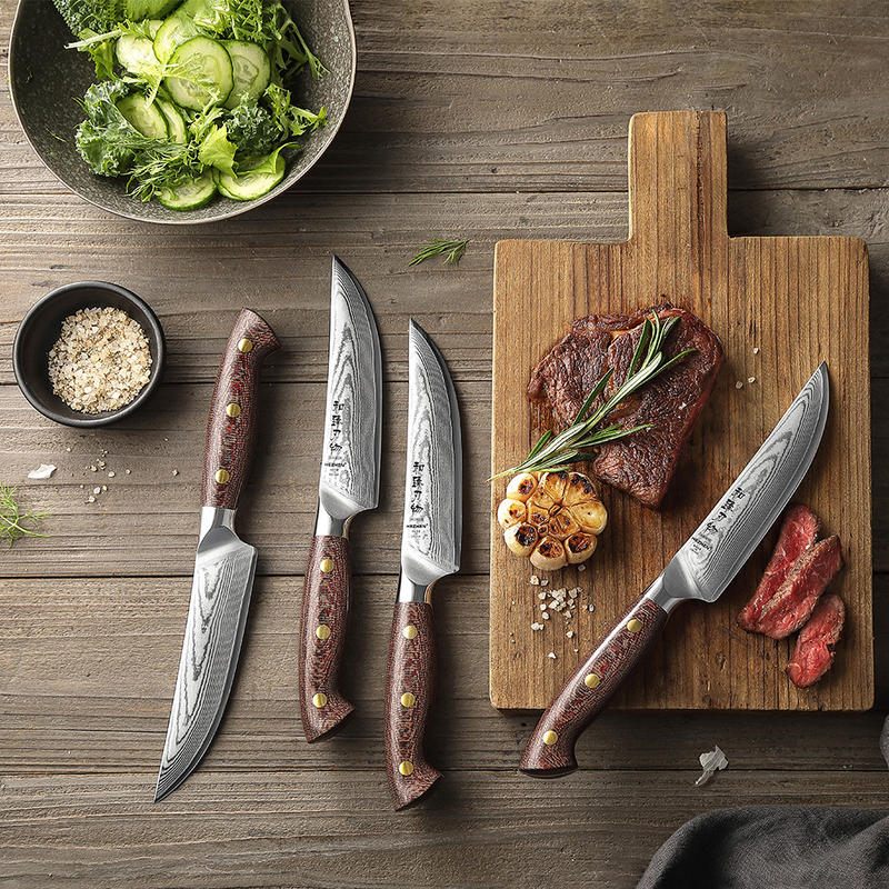 HEZHEN 4 Pcs Steak Knife Set High Quality Damascus Steel Micarta Handle Kitchen Knives Custom Cutlery New