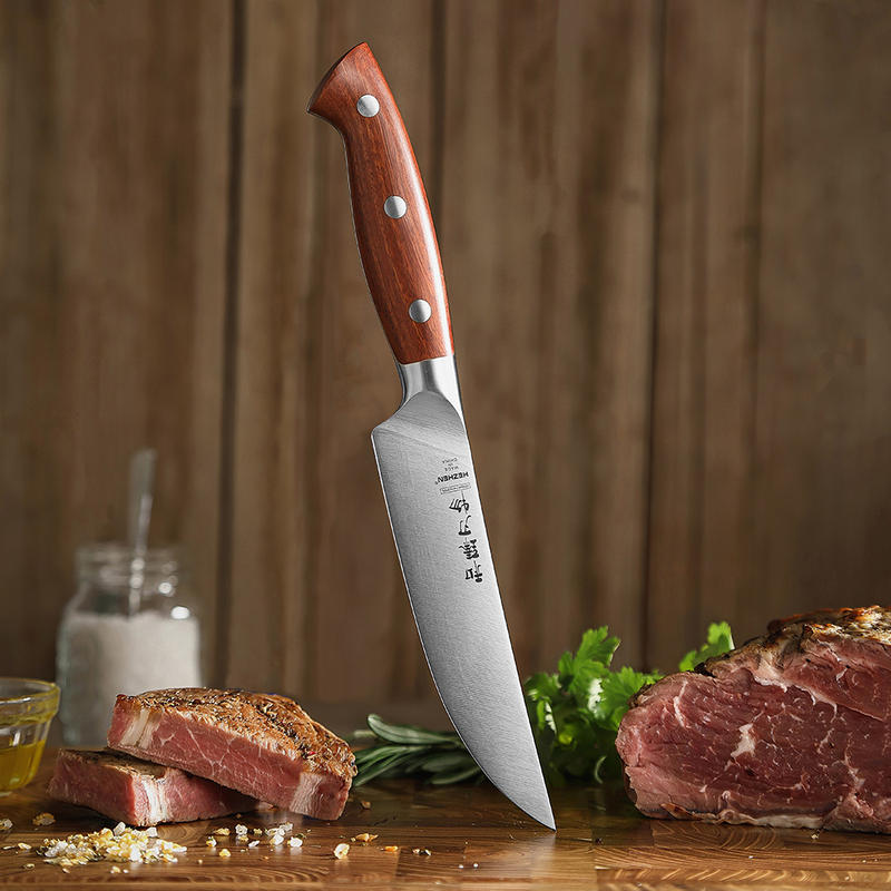 HEZHEN Cutlery New Steak Knife German 1.4116 Stainless Steel Natural Red Wood Handle Kitchen Home Restaurant