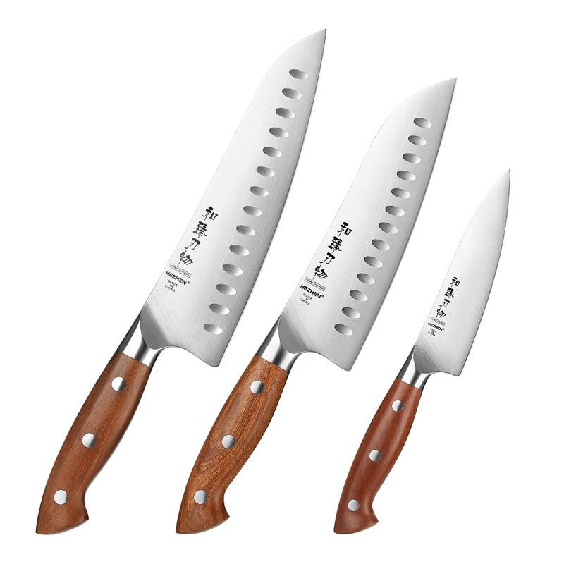 HEZHEN New 3 Pcs Chef Knife Set Razor Sharp Wooden Handle Kitchen Knives