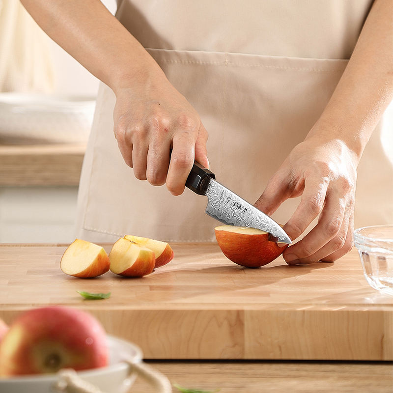 HEZHEN New 4 Inch Paring Knife Aogami Steel High Carbon Damascus Steel Sharp Kitchen Fruit Knives Natural Wood Handle