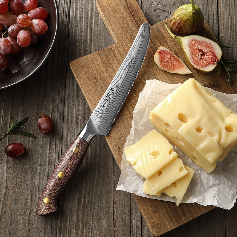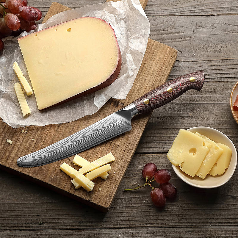 HEZHEN New Damascus Steel Cheese Knife Kitchen Cooking Butter Cake Knives Durable Micarta Handle Cutlery