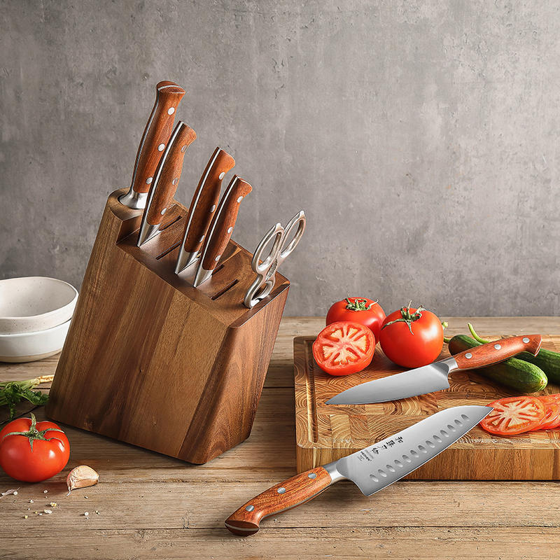 HEZHEN New High Quality 8 Pcs Chef Knife Set With Wooden Knife Holder Gift Box