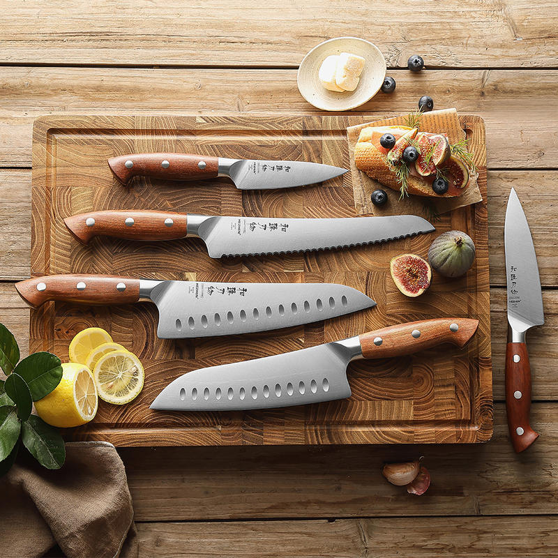 HEZHEN New Original Design Kitchen Chef Knife Set German Stainless Steel Handmade Red Wood Handle Gift