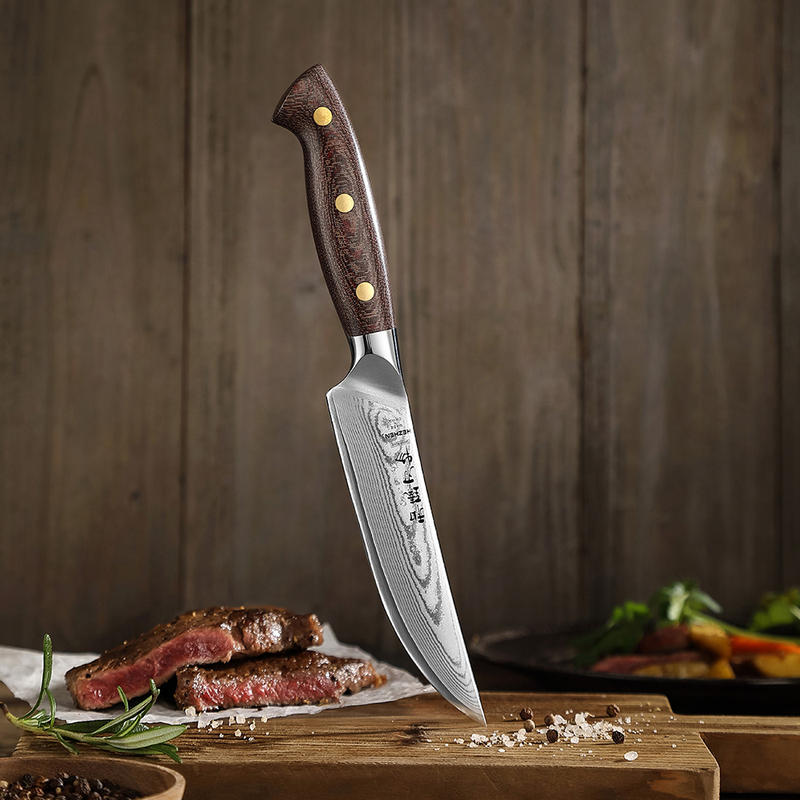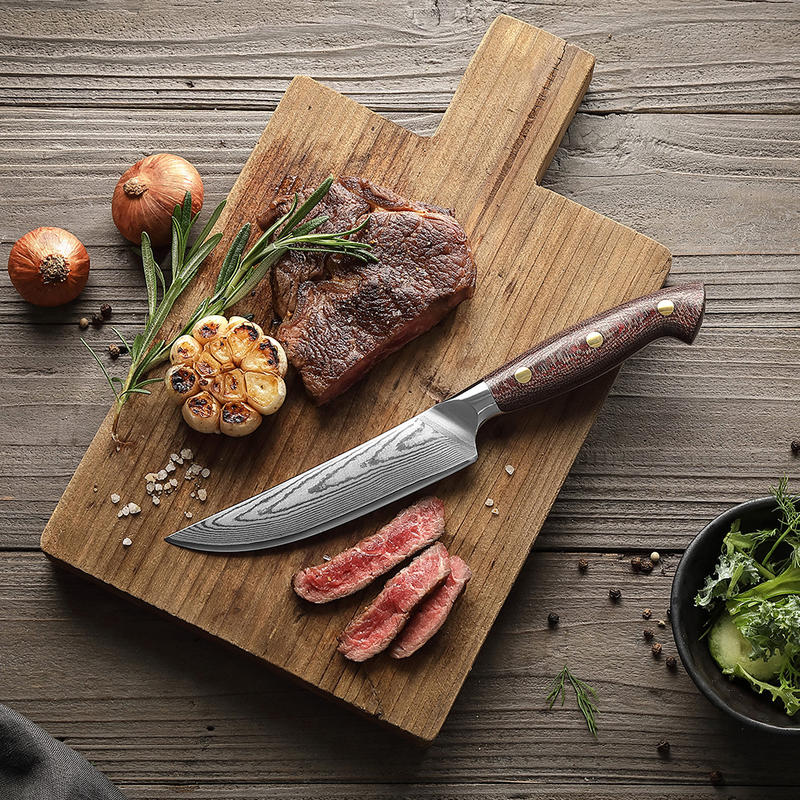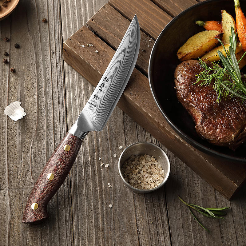 HEZHEN New Steak Knife Custom Damascus Steel Durable Micarta Handle Sharp Restaurant Kitchen Knives