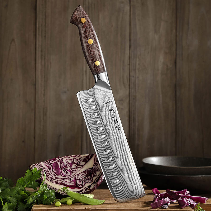 HEZHEN Novelty Japanese Nakiri Knife High Quality Damascus Steel Sharp Kitchen Meat Vegetable Cutting Knives Micarta Handle