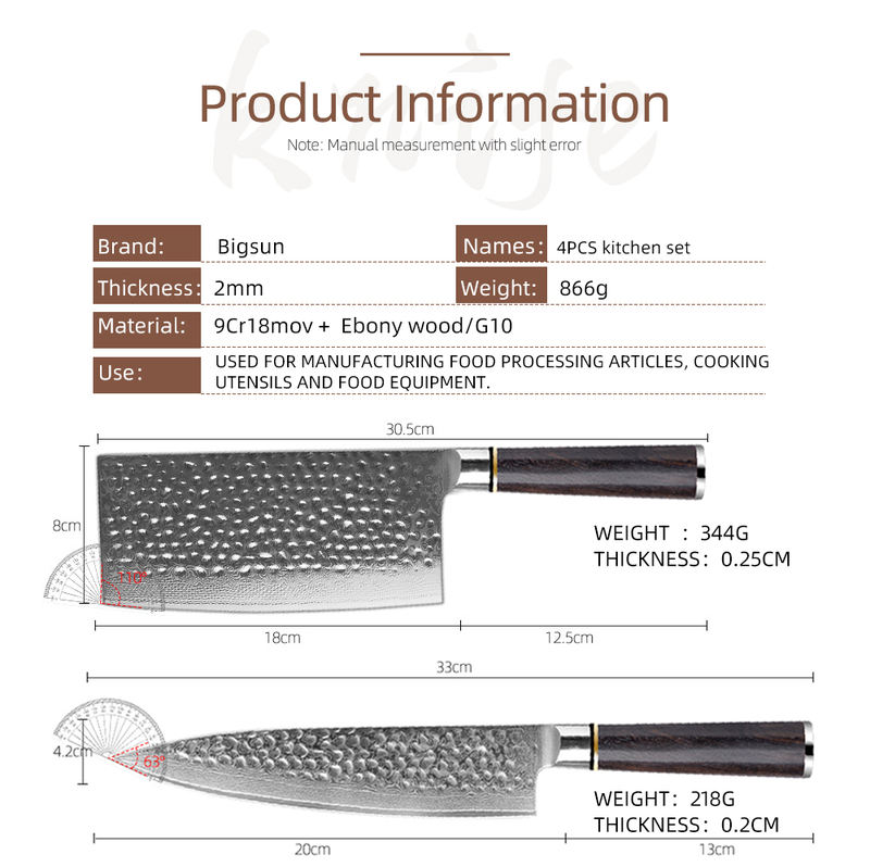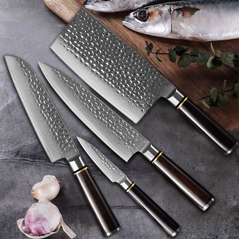 High Carbon 4Pcs Damascus Steel Kitchen Knife Set With Magnetic Wooden Block