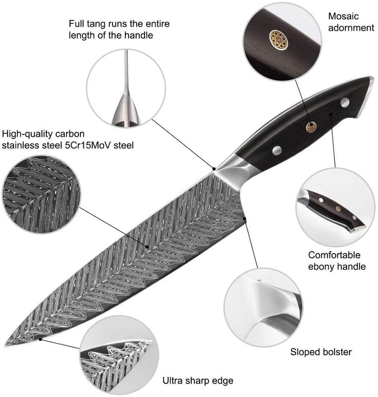 High Carbon Anti-Corrosion Kitchen Knife Damascus Steel Cooking Knives 8 Inch Chef Knife with Ergonomic Wood Handle