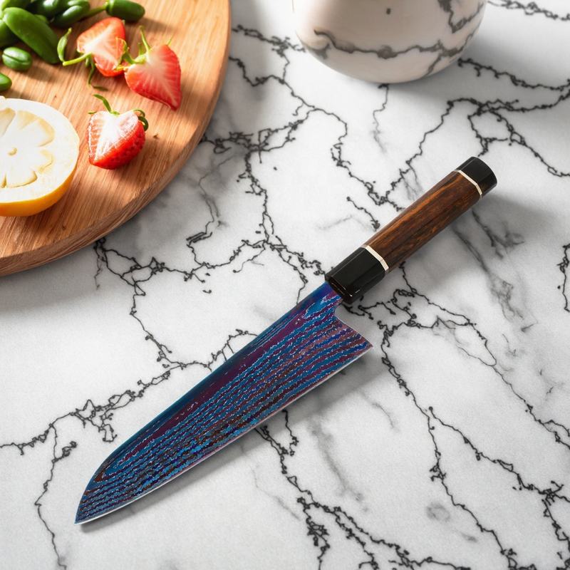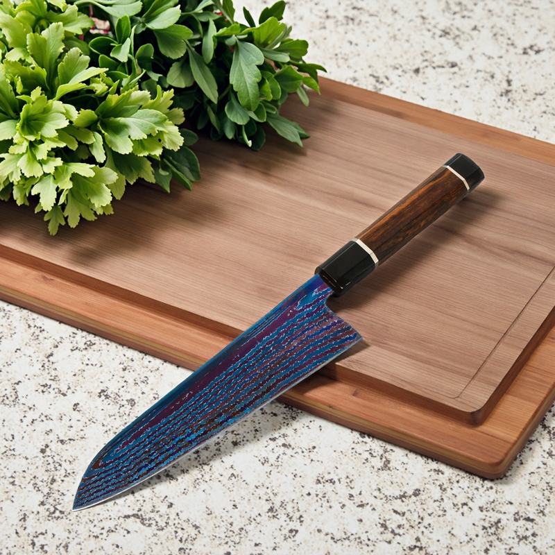 High Carbon Damascus Steel Bluing Technology Blade Kitchen Gyuto Knife Octagonal Rose Wood Handle Chef Knife