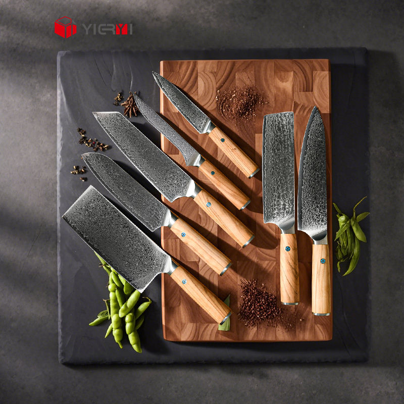 High Carbon Damascus Steel Meat Cleaver Knife Couteaux De Cuisine Japanese Kitchen Chef Knife Set Messer Damascus Knife Set