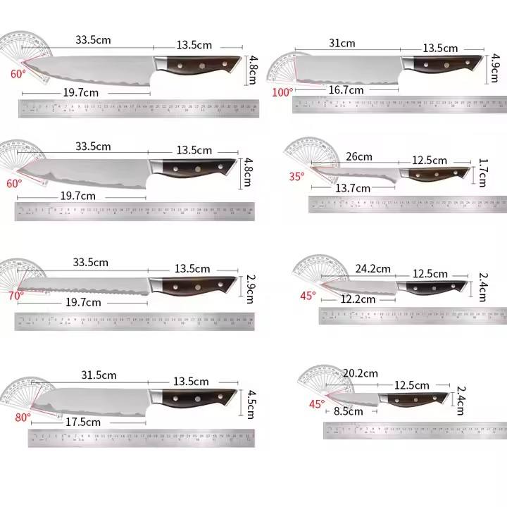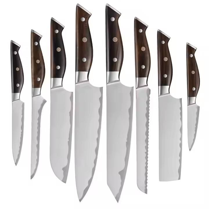 High Carbon Full-tang Triple Rivet 8 PCS Stainless Steel Kitchen Knife Set With Wood Handle