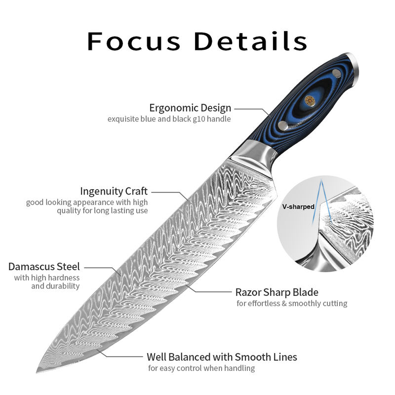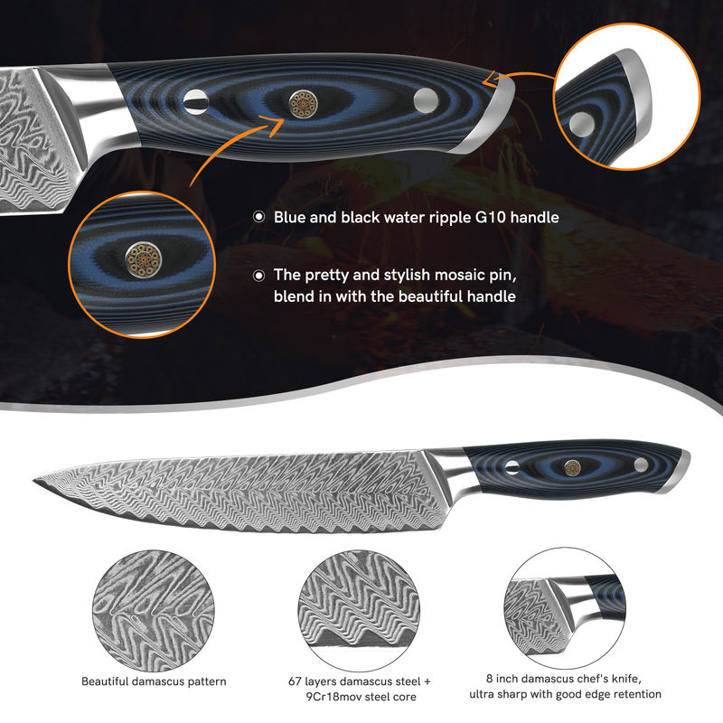 High Carbon G10 Handle 8 Inch Chef Knife With Gift Box 67 Layers Damascus Steel Kitchen Knife